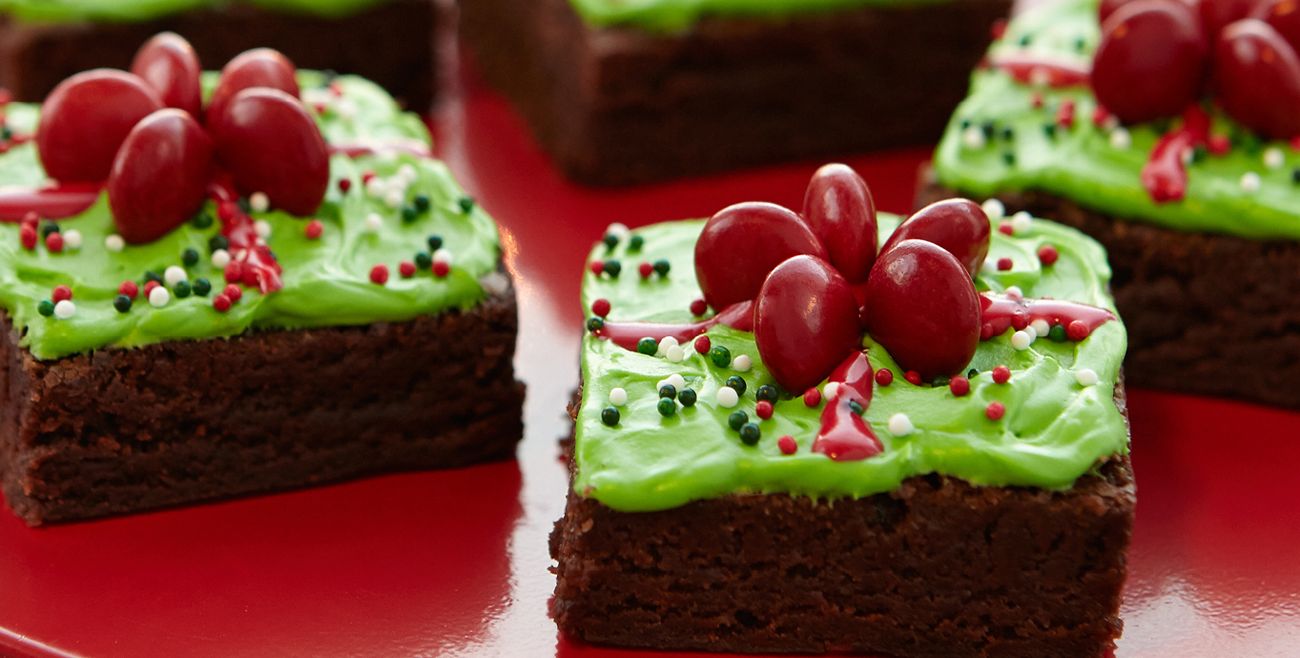Decorate the trees with any color of sprinkles and add a star sprinkle to the top. Remove brownies from pan and cut into 16 squares trimming sides if. Sift the flour salt and cocoa powder and fold into the wet ingredients until just combined.